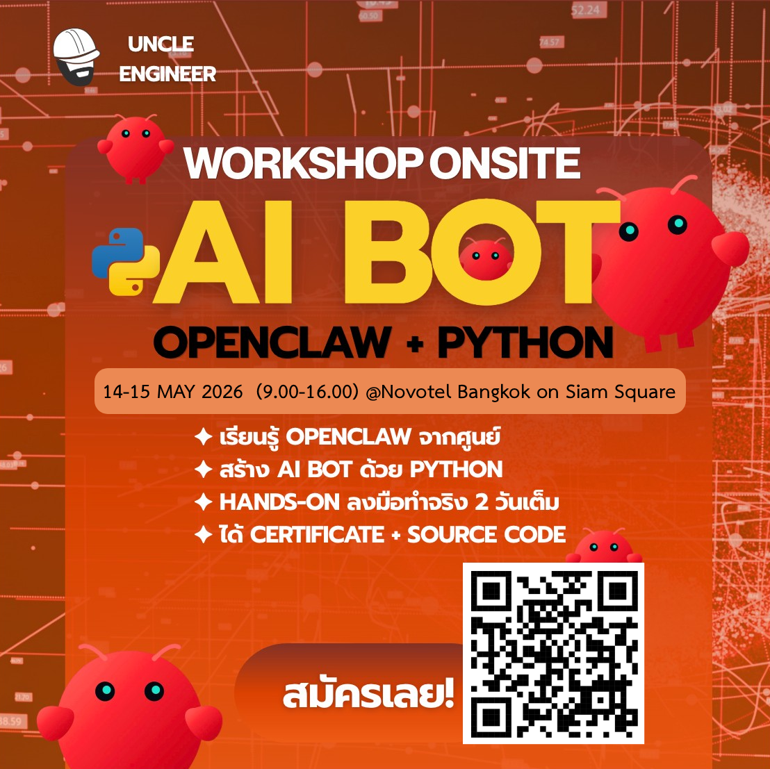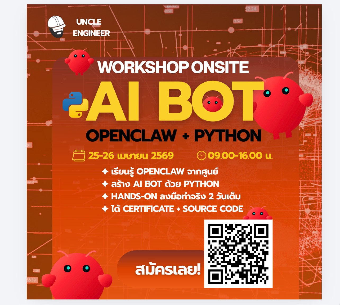 คอร์ส “AI Bot with OpenClaw + Python (2 Days Intensive)” เป็นคอร์สเข้มข้น 2 วันเต็ม ที่ออกแบบมาเพื่อพาคุณจาก “ผู้เริ่มต้น” ไปสู่การ “สร้าง AI Bot ใช้งานจริง” ได้ภา…