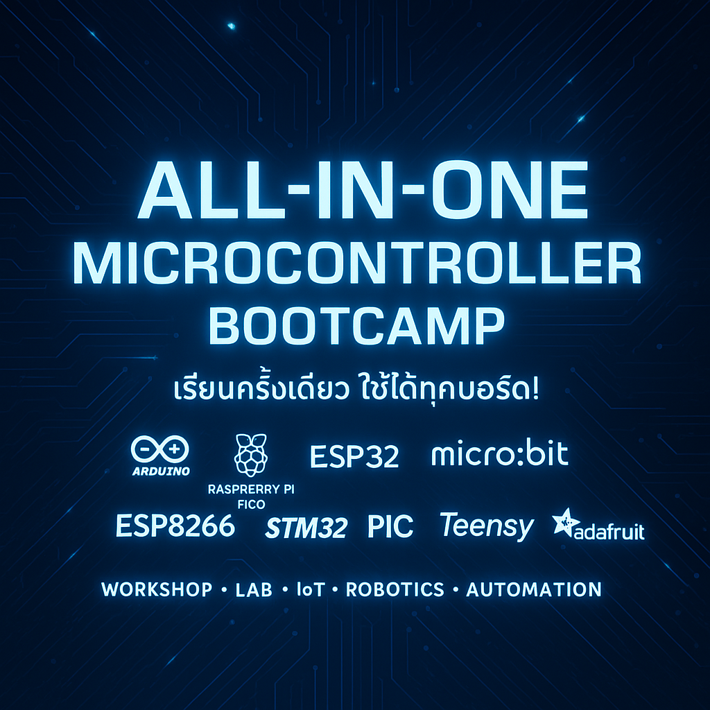 หากคุณอยากเริ่มต้นเขียนโปรแกรมควบคุมไมโครคอนโทรลเลอร์ แต่ไม่รู้ว่าควรเริ่มจาก Arduino, ESP32, Raspberry Pi Pico หรือบอร์ดไหนก่อน — คอร์ส All-in-One Microcontrol…