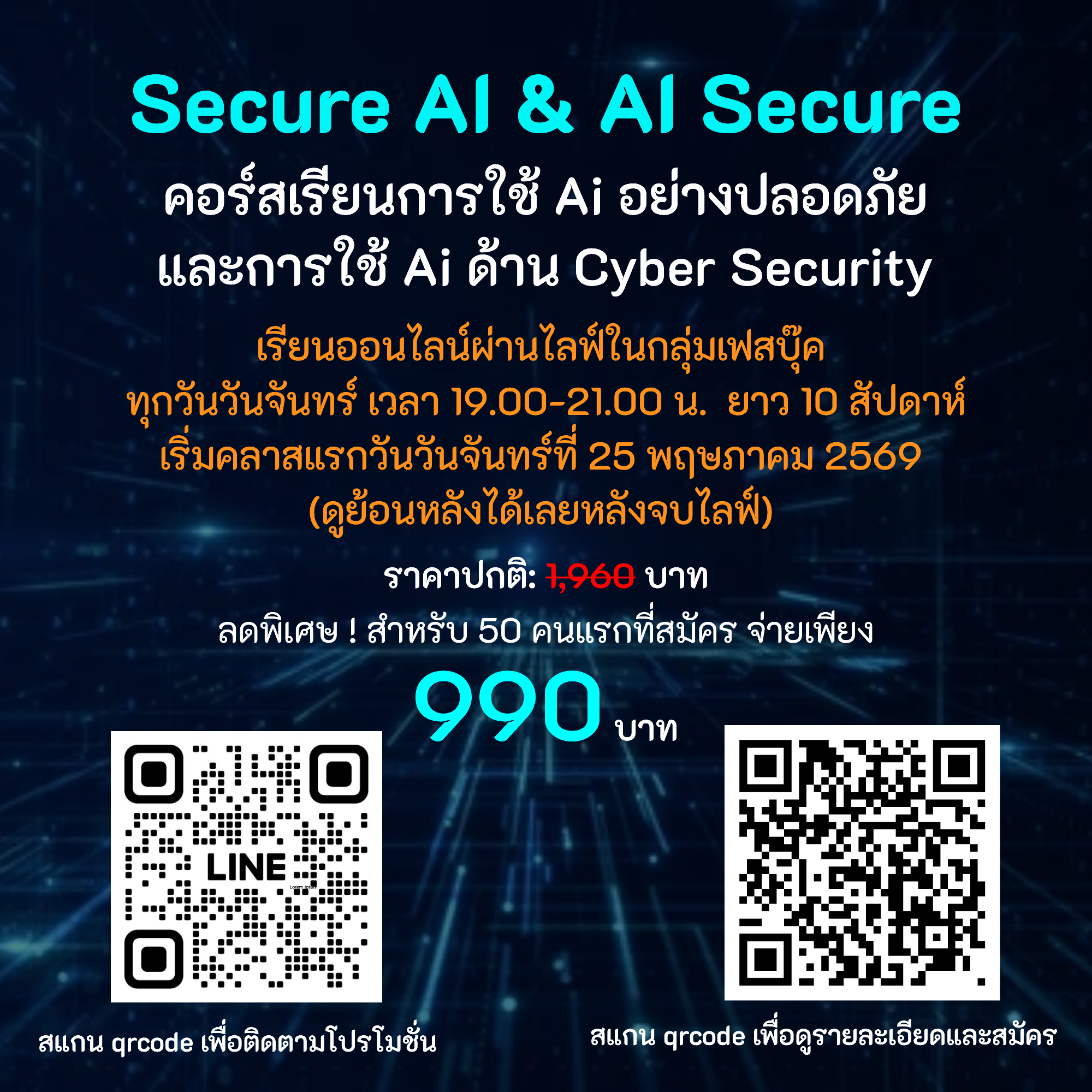 มาแล้ว! วิชาด้าน Cyber Security ที่เสริมเขี้ยวเล็บด้วย AI คอร์ส "Secure AI & AI Secure" เป็นหลักสูตรที่ออกแบบมาเพื่อให้ผู้เรียนเข้าใจทั้งการใช้งาน AI ในองค์กรอย่าง…